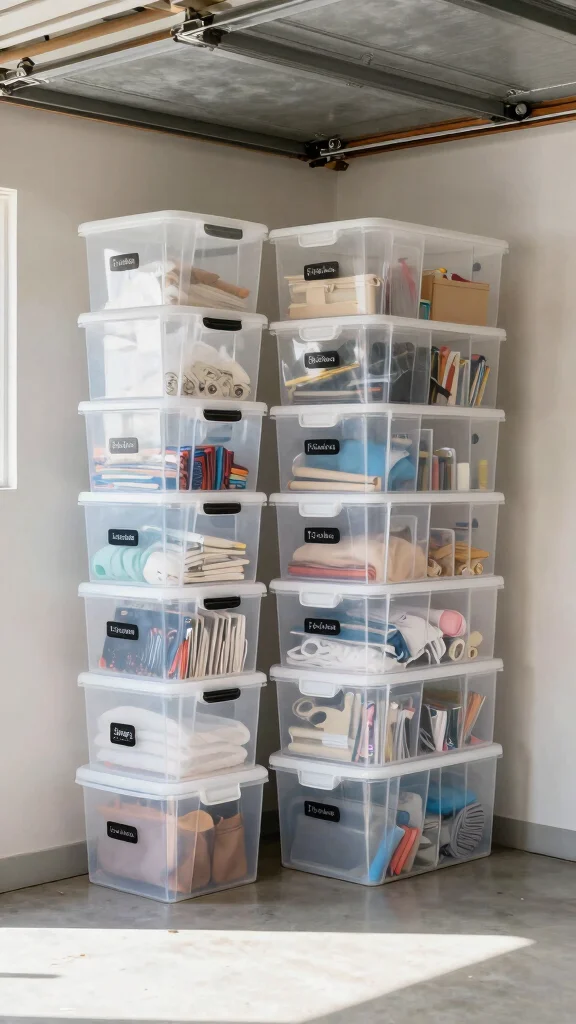 Fun fact: clear storage bins can cut your search time by up to 60% because everything is visible at a glance. Label and stack them to maximize vertical space—perfect for garage projects and even quick half bath design ideas.