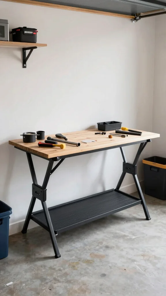 Incorporating a foldable workbench into your garage is a fantastic way to maximize functionality while saving space. These benches can be set up when needed and easily tucked away afterward, providing a sturdy work surface for various projects. Envision a flexible workspace that adapts to your needs without compromising on space.
