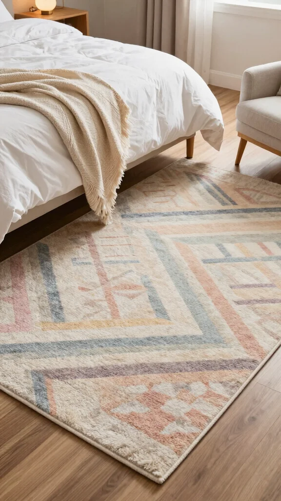 Rugs with vibrant patterns can serve as conversation starters, making your bedroom feel more inviting and lively.