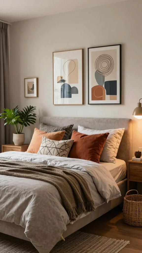 Artistic wall decor can elevate your bedroom from mundane to magnificent. Large canvas paintings or framed prints that resonate with your personal style can create a captivating focal point. Consider a gallery wall filled with smaller pieces to showcase your interests and personality. Mix frame styles for a bohemian vibe or choose sleek designs for a contemporary look. Adding three-dimensional pieces like woven baskets or macramé wall hangings can enhance the visual depth of your decor.
