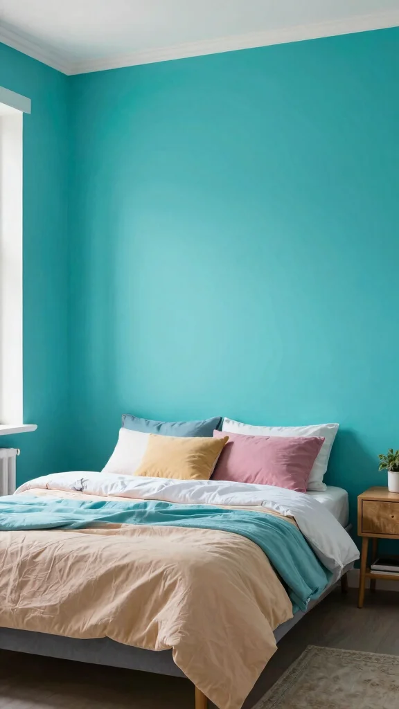Great palettes for a fun yet relaxing look include: 1) warm sunset mix (peach, coral, teal, olive) for a lively vibe; 2) bright primaries paired with creamy neutrals for a playful vibe; 3) calm pastels with a deep accent to soften the room. Test swatches on your wall or in a large fabric sample to see how they shift with lighting. Use a dominant color on walls or bedding and tie in the others through cushions, artwork, and decor to maintain an atmosphere that’s fun yet calm. These approaches are perfect for realising colourful bedroom ideas without overdoing it.