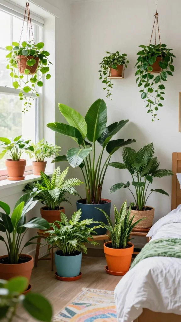 Bring the beauty of nature indoors with vibrant houseplants that uplift your bedroom ambiance. Not only do plants add a splash of color, but they also improve air quality and promote a sense of well-being. Choose colorful pots that complement your decor, creating a lush, inviting environment.