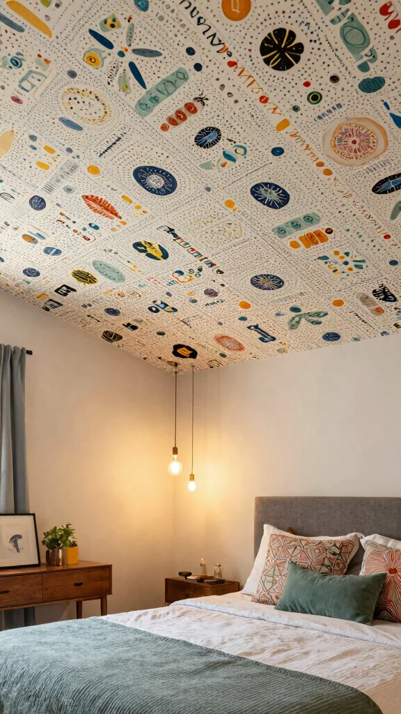 Don’t forget about your ceiling! Decorating this often-overlooked space can add unexpected charm and whimsy to your bedroom. Consider painting the ceiling a fun color, adding wallpaper, or using decals to create a playful touch that draws the eye upward.