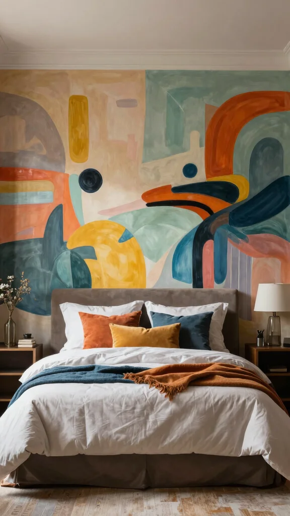 Transform the area behind your headboard with a mural that serves as an artistic backdrop. A painted mural can tell a story, create depth, or simply add a burst of color, enhancing the room’s decor in a unique way. This eye-catching feature instantly elevates the space, making it feel more dynamic and personalized.