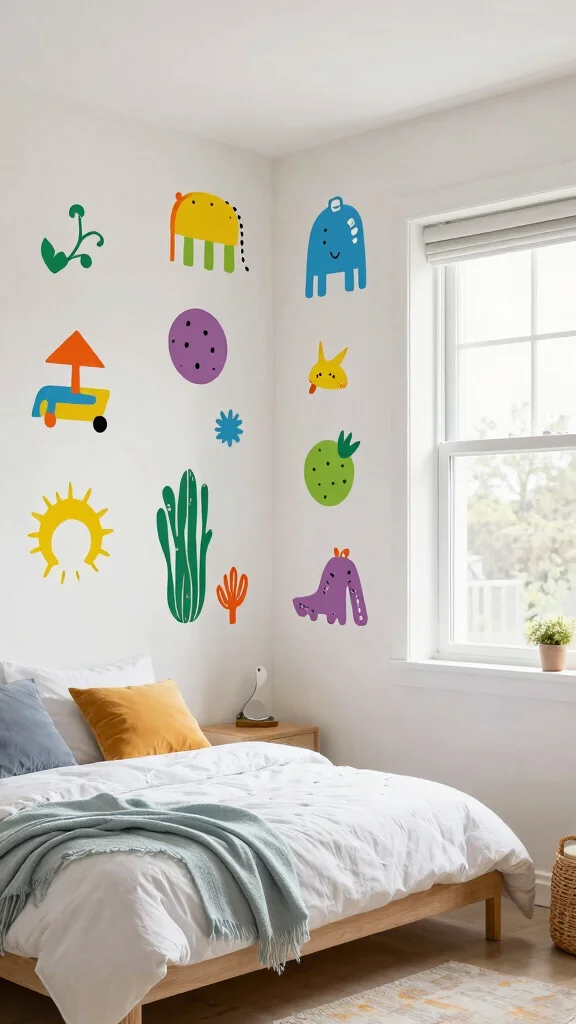 Vibrant decals can create a playful atmosphere while allowing for easy updates, making your bedroom feel fresh and inviting.