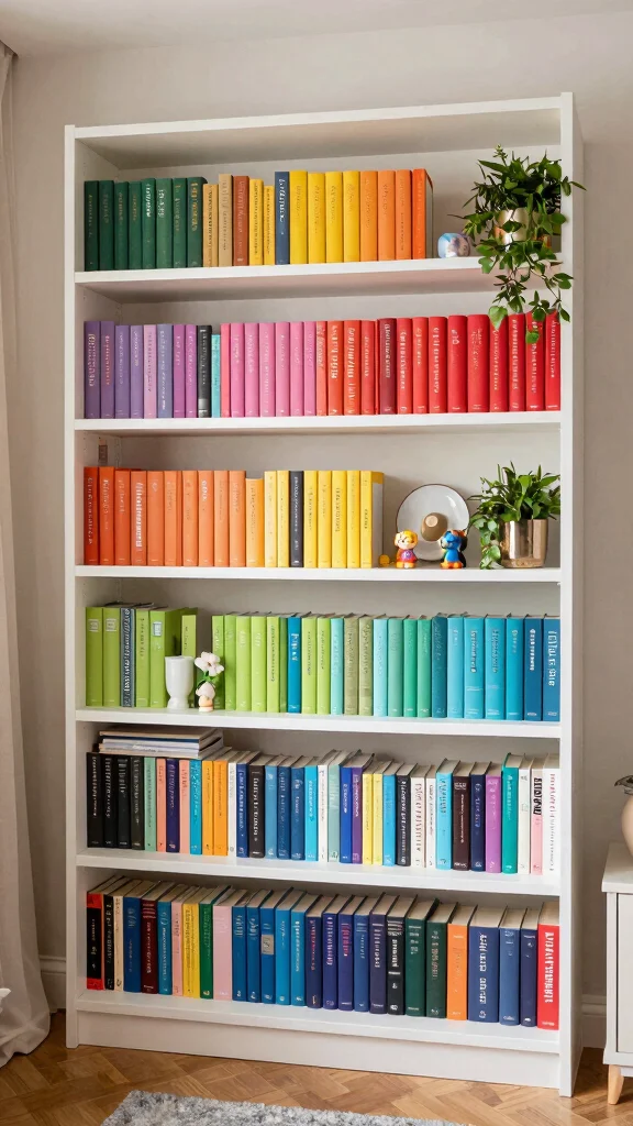 If you love reading, why not showcase your books as part of your decor? Create colorful displays on shelves or side tables that double as art. Organizing books by color can create a rainbow effect, adding visual interest and charm to your bedroom.