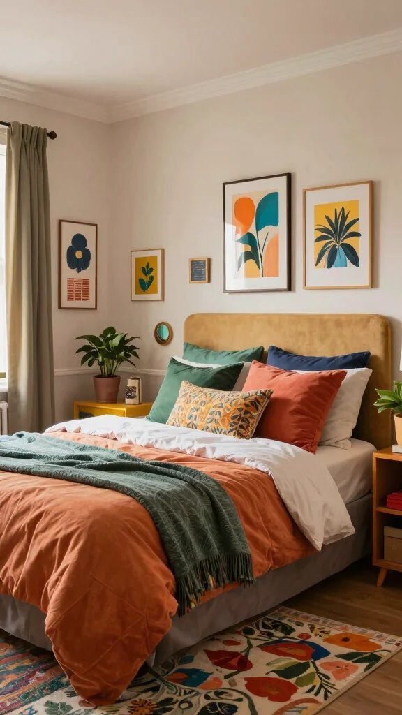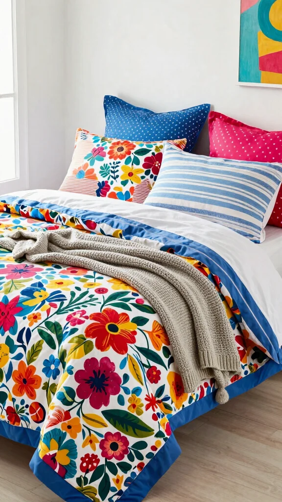 For a budget-friendly approach, consider layering less expensive bedding with a statement duvet cover or accessorizing with colorful throw pillows. This playful mix not only ties the room together but also aligns with the broader trend of embracing bold colors in home decor.