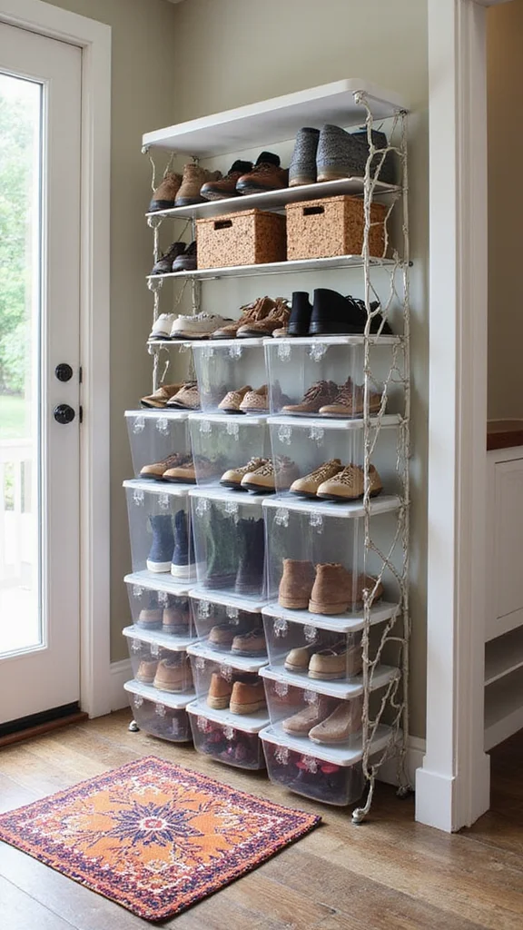 3) Add a slim shoe rack or modular cubbies to organize footwear.