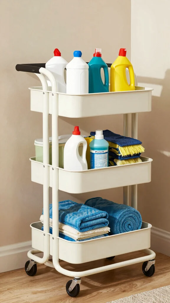 3) Create a drop zone near the machines for detergents and lint brushes, with labeled bins.