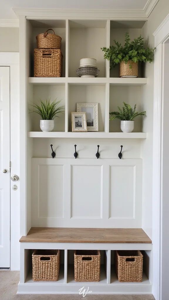This approach not only keeps your items organized but also adds character to your mudroom, turning it into a stylish entry point.