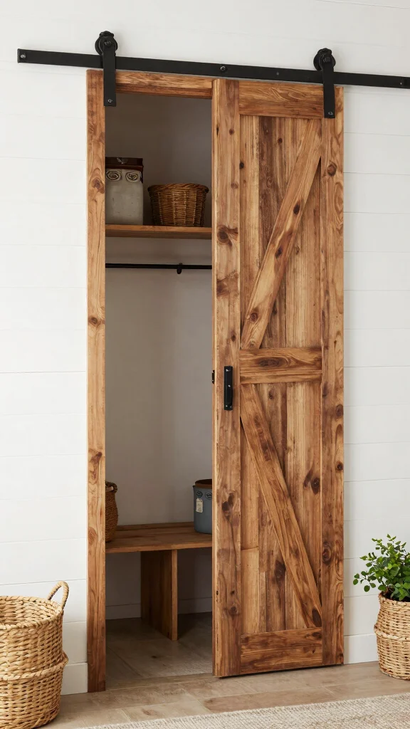 A sliding barn door not only adds style but also maximizes space efficiency, enhancing the overall design of your mudroom.