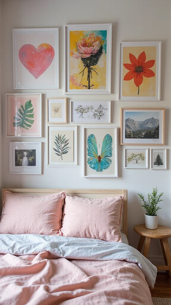 – Create a gallery wall: Use a variety of frame sizes and colors for a bold look.