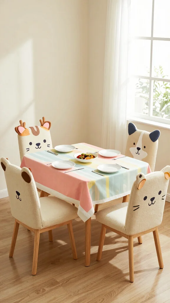 This fun approach to chair covers enhances your home’s atmosphere, making every meal a delightful experience.