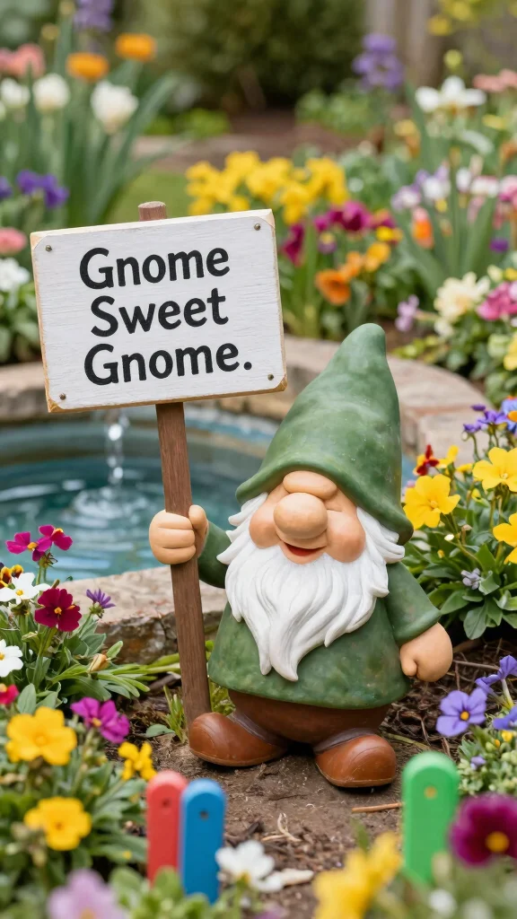 Bring joy to your garden with cheeky decor that sparks laughter! Think about whimsical garden gnomes, playful signs, or quirky sculptures that enhance your outdoor space. A gnome holding a sign saying ‘Gnome Sweet Gnome’ can infuse character into any corner of your garden.