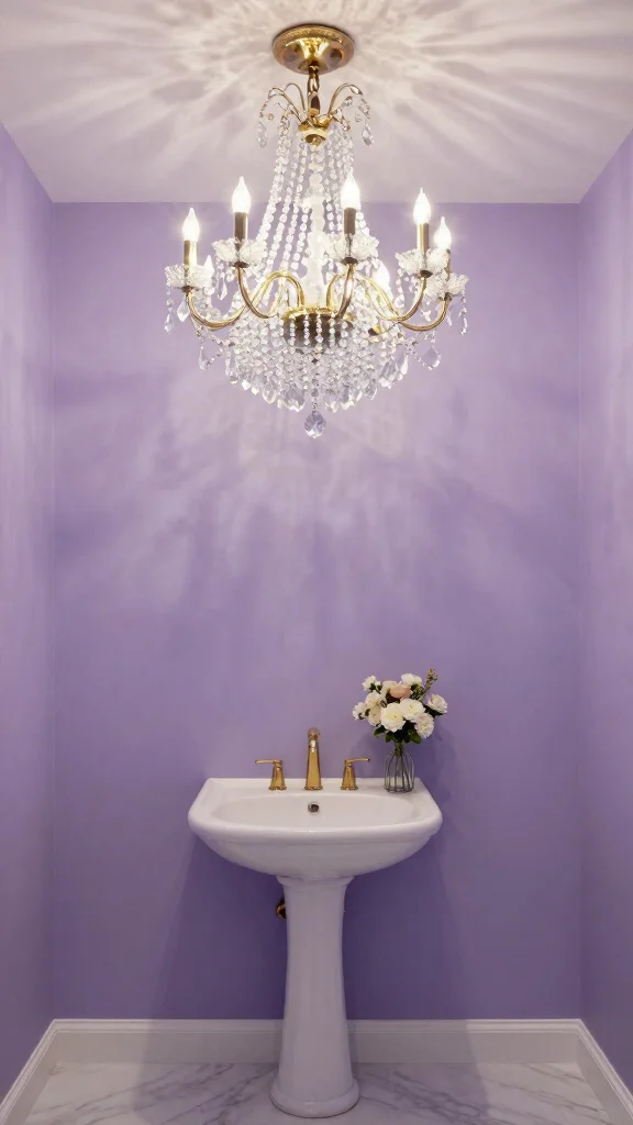 An opulent crystal chandelier can instantly elevate the mood of your half bath, merging functionality with a touch of luxury. This exquisite lighting fixture not only casts an inviting glow, but it also infuses the space with a sense of grandeur. Choose a chandelier that matches your bathroom’s dimensions; a carefully selected piece will shimmer beautifully, creating a cozy yet elegant atmosphere that beckons relaxation.