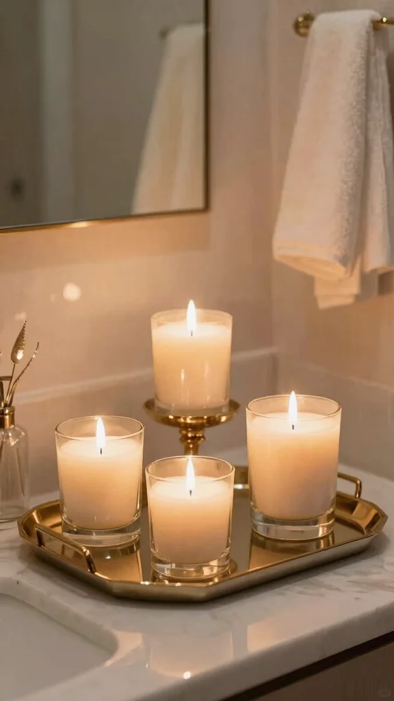 Arrange candles on the sink, shelves, or in a stylish tray for an elegant display. Be mindful of scent combinations, opting for complementary fragrances that promote a soothing atmosphere. Consider varying candle heights for added visual intrigue.
