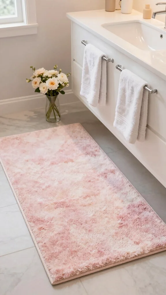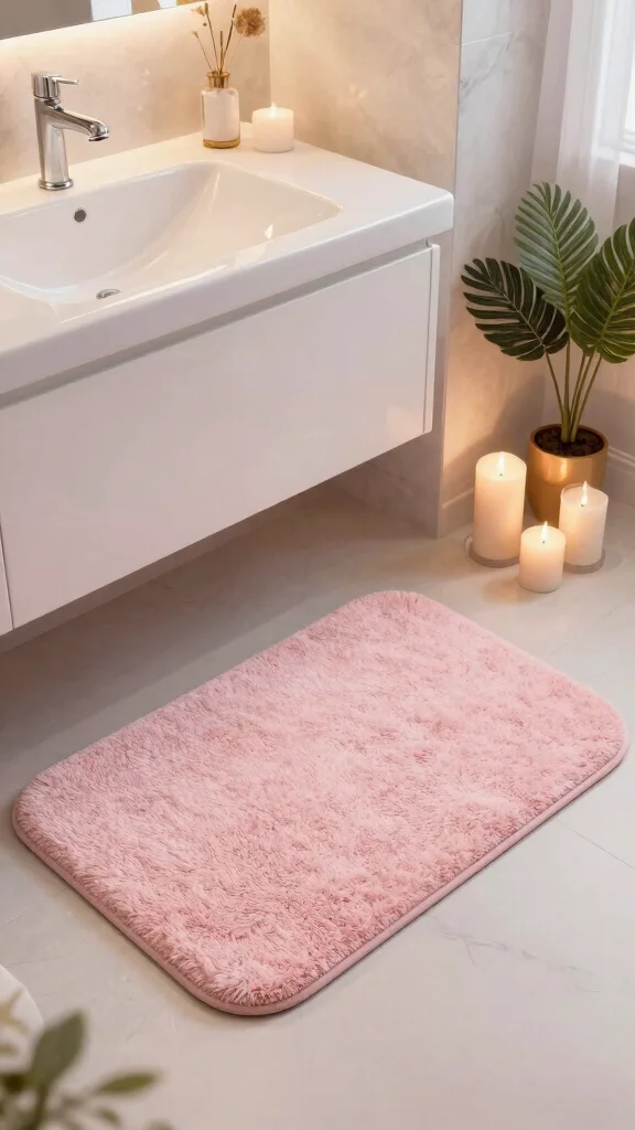 Ensure the mat is large enough to cover your stepping area without overwhelming the room. Choose colors that either complement or create a striking contrast with your bathroom decor. Experiment with layering mats for added texture and comfort, enhancing the inviting nature of your half bath.