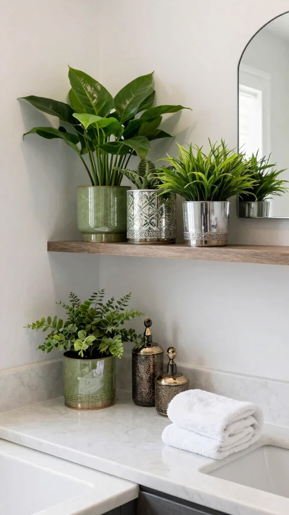 Incorporating vibrant plants into your half bath can infuse life and glamour into the space. Select plants that thrive in humid environments, such as ferns or pothos, ensuring they flourish in your bathroom’s conditions. Choose beautiful pots or planters that match the elegance of your decor for a cohesive look.