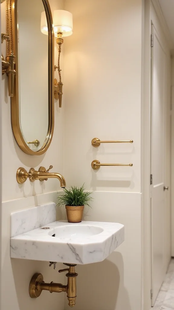 Gold fixtures bring an unmatched elegance to your half bath, elevating even the simplest designs to a new level of sophistication. These stunning elements, including faucets, towel bars, and cabinet handles, radiate warmth and style, making your space feel more inviting. By choosing gold, you introduce a timeless quality that pairs beautifully with various color palettes, from white to deep jewel tones.