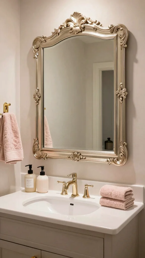 A beautiful mirror can transform your half bath into a glamorous retreat, reflecting both light and style while enhancing the room’s overall design.