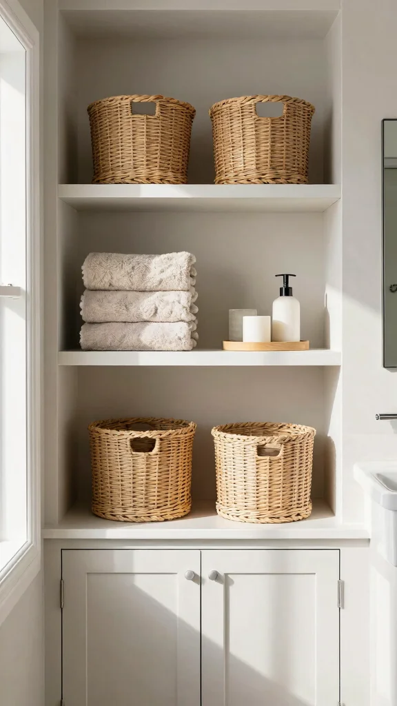 Stylish storage solutions are key in a half bath, particularly when space is limited. Opt for decorative baskets, chic shelving, or elegant cabinets that enhance the decor while keeping the area organized. These functional elements can elevate the style of your space, merging practicality with aesthetic appeal.
