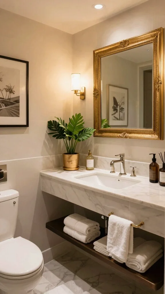 Gorgeous bath accessories can elevate your half bath decor to new heights. Think about adding luxurious soap dispensers, chic toothbrush holders, and elegant trays that keep everything organized while enhancing style. Look for materials like glass, marble, or ceramic that resonate with your glamorous theme.