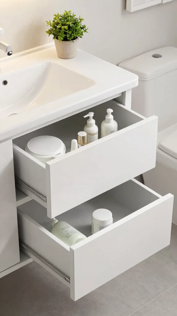 A compact vanity can be a game-changer in a small bathroom. Look for vanities with built-in drawers and shelves designed to maximize storage without overwhelming your space. Choose a style that fits your aesthetic, from rustic wood to sleek modern finishes. Investing in a vanity with compartments allows you to keep items organized and easily accessible. Here are some tips for optimizing your vanity:- Use drawer dividers to keep smaller items organized.- Regularly declutter to maintain a fresh appearance.- Select a vanity color that complements your bathroom’s palette.