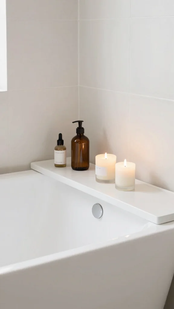 If you have a bathtub, consider utilizing space-saving shelves that straddle its edge. These shelves offer easy access to bath essentials while adding a decorative touch. Choose a minimalist design that harmonizes with your bathroom’s overall look. You can use these shelves for candles, bath products, or even a book, making your bath time more enjoyable. To use bathtub shelves effectively:- Keep items minimal to avoid clutter.- Select waterproof or easy-to-clean decor items.- Regularly check for water damage to protect the shelves.