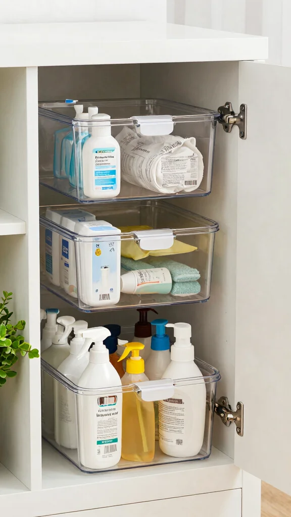Start with quick wins: adhesive hooks, magnetic strips for small metal items, and baskets that fit your cabinets.