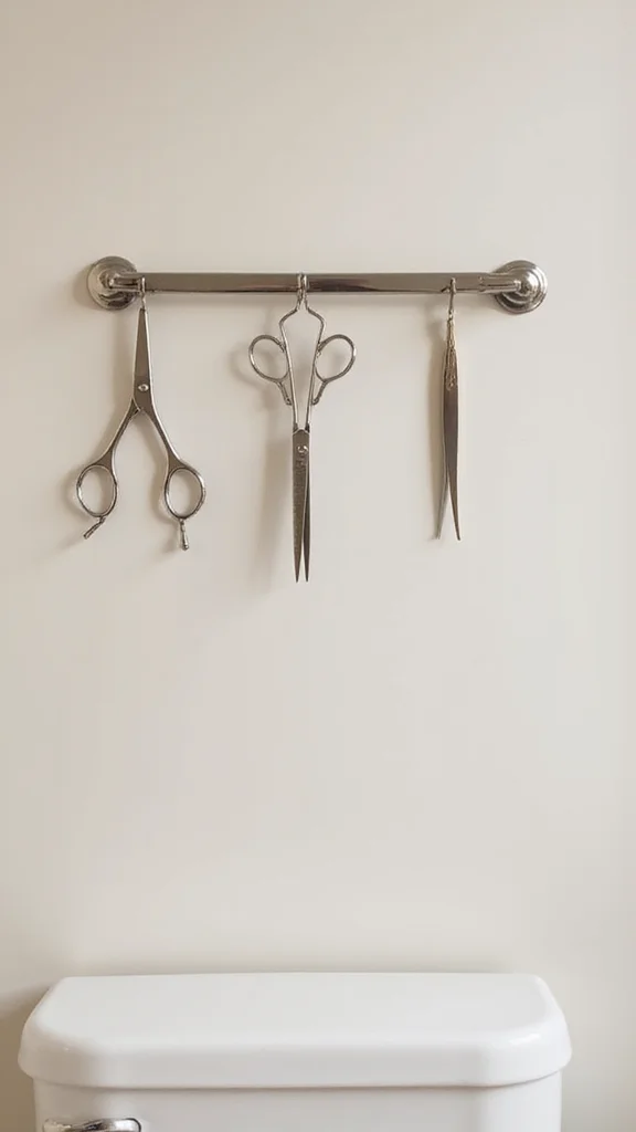 A magnetic strip serves as an innovative storage solution, turning an ordinary wall into an organized space for small metal items. This clever addition keeps essentials like tweezers and scissors visible and within reach. Mount the strip inside a cabinet door or on a wall to free up counter space while showcasing your essentials. This modern touch not only saves space but also supports a clutter-free environment. To optimize this idea:- Select a sleek metallic finish that complements your fixtures.- Organize items by frequency of use for efficiency.- Ensure secure mounting for safety and stability.