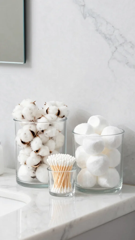 Clear canisters provide a stylish way to store bathroom essentials while keeping them visible. Ideal for items like cotton balls, Q-tips, and bath salts, these containers maintain an organized feel without contributing to clutter. Select canisters that align with your bathroom’s aesthetic, whether opting for modern glass or rustic ceramic. Display them on shelves or your vanity for easy access. For effective use of clear canisters:- Label each canister for quick identification.- Keep them well-stocked to avoid overflow.- Use a tray beneath to catch spills and create a cohesive look.