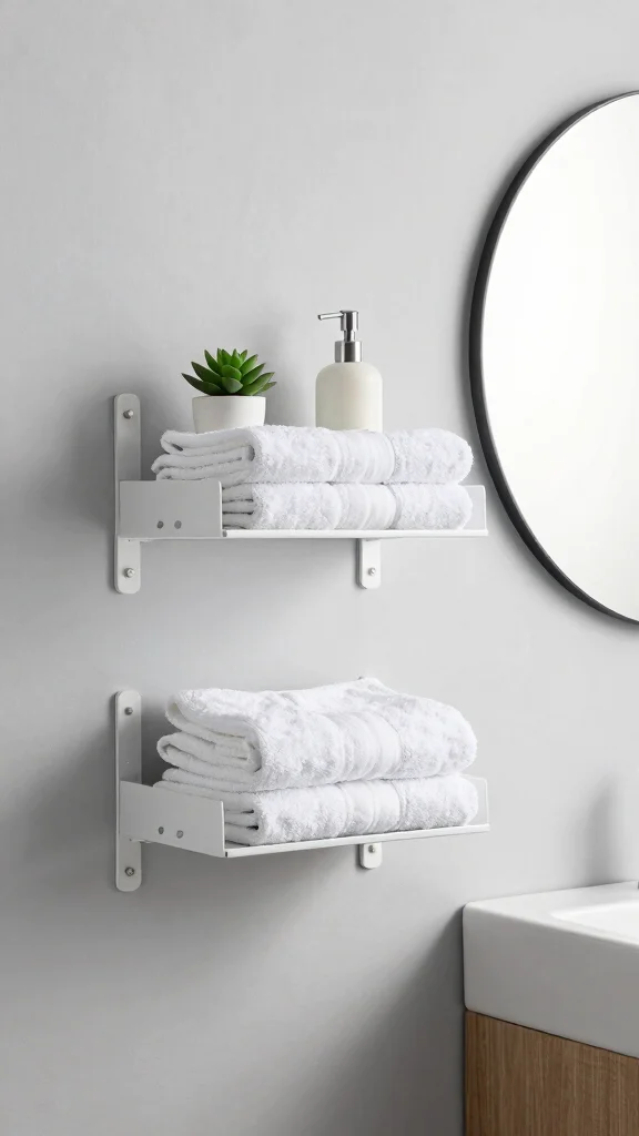 Incorporating floating shelves into your small bathroom can elevate both storage and style. These shelves not only create visual harmony but also add a contemporary touch that makes your space feel larger. By placing them above the toilet or sink, you can showcase decorative elements like plants or neatly folded towels, transforming everyday items into artful displays. To keep a streamlined look, choose shelves in a single color palette. White shelves against soft, light walls enhance an airy atmosphere, while wood tones introduce warmth. Organize your essentials in chic baskets or decorative boxes to maintain both functionality and style. Consider these tips for enhancing your floating shelves:- Pair shelves of varying lengths for a dynamic layout.- Limit displayed items to a few curated pieces for a clean look.- Incorporate a small succulent for a pop of freshness without cluttering the space.